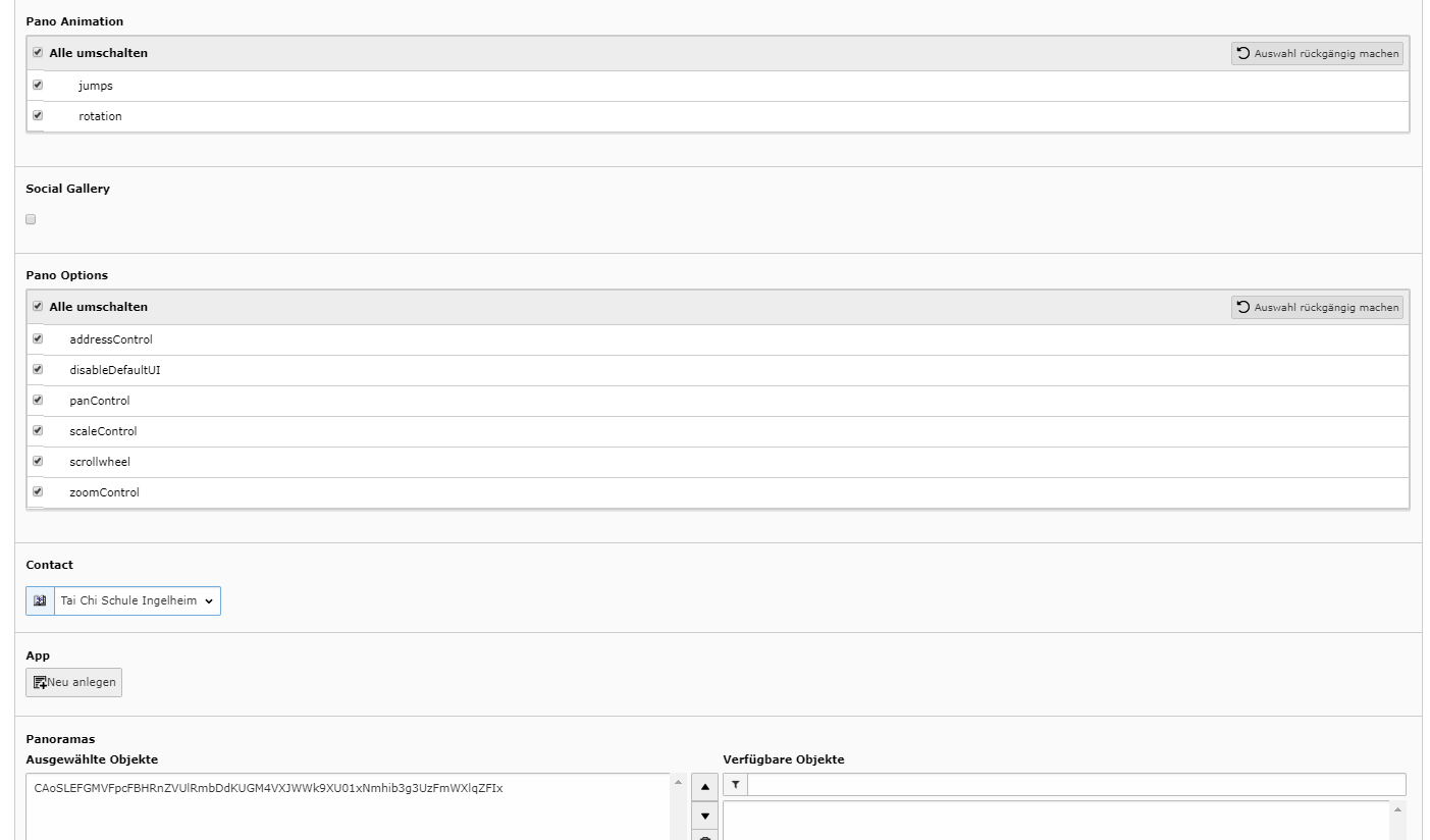 Der Panorama Designer ist ein typo3 Backend Modul. Sie können Ihre Streetview Aufnahmen auf Ihrer typo3 Seite anzeigen. Die Ansichten lassen sich einfach einstellen und ermöglichen mit Overlays dem Benutzer die Navigation ermöglichen durch Ihren BusinessView. Je Position werden auch die normale Inhalte der Seite als Overlays dargestellt.