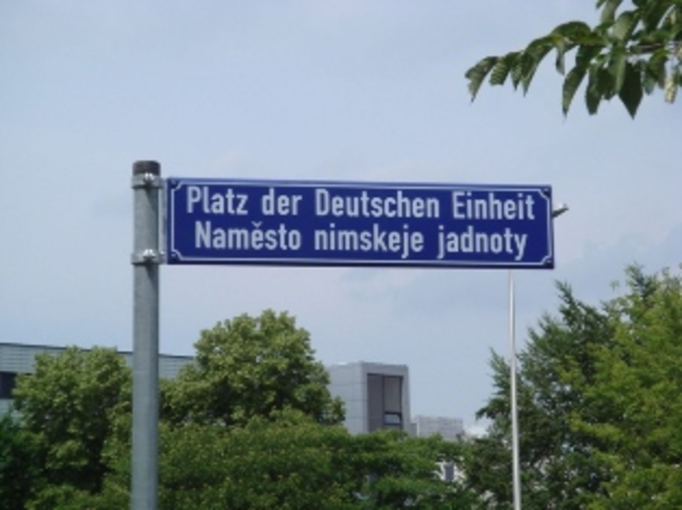 Foto Mitte: Enthüllung des Straßenschildes und Einweihung des „Platzes der Deutschen Einheit“.