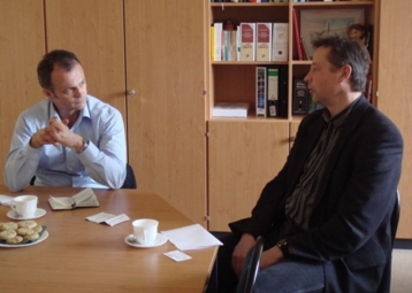 Foto: Prof. Dr. Michael Schierack MdL im Gespräch mit dem Schulleiter der Paul-Werner-Oberschule Herrn Paulenz (v.l.)
